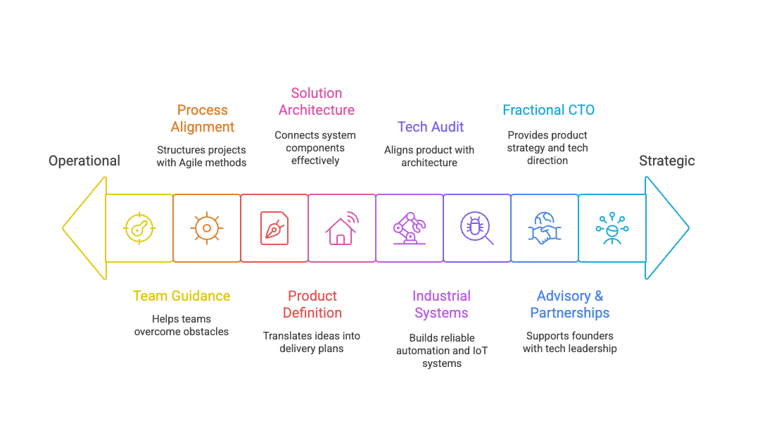 I work with founders, developers, teams, and tools that need clarity, direction, or a brutally honest second brain.